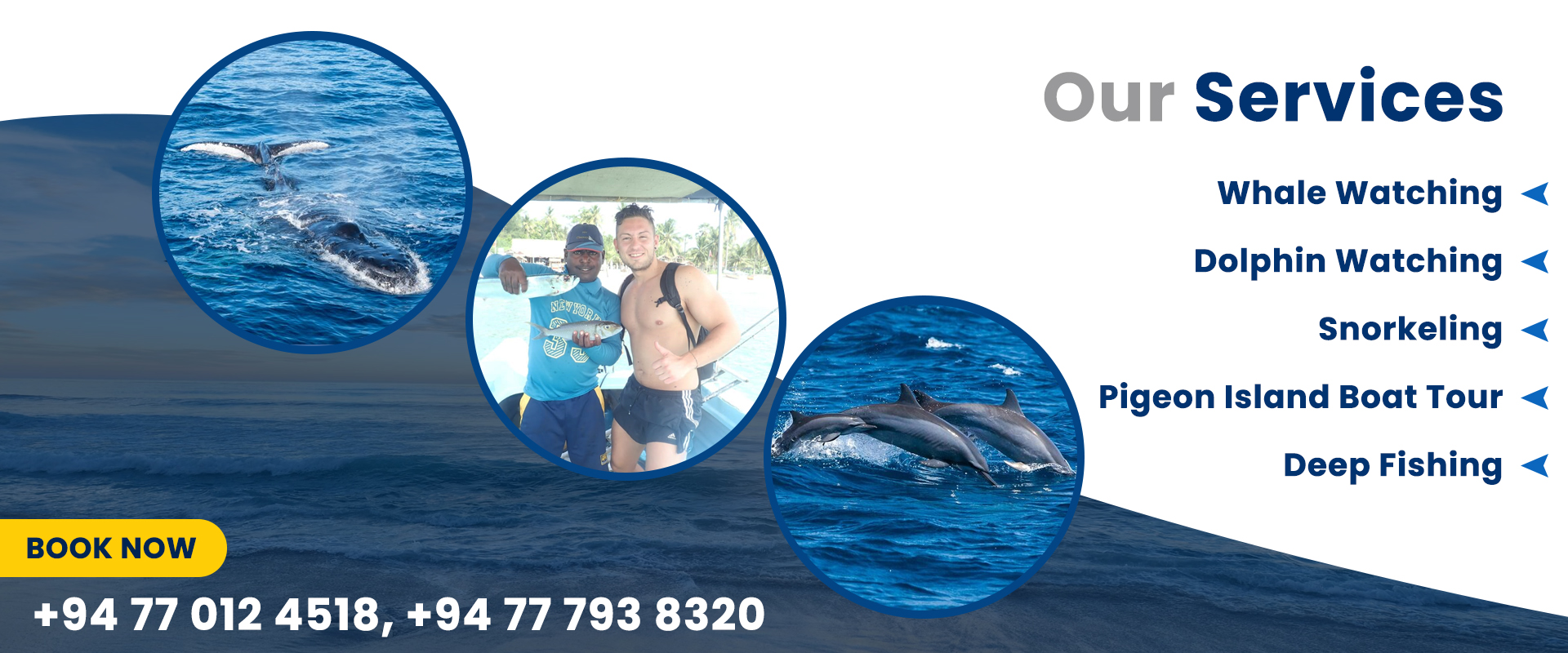 - Providing thrilling whale watching, dolphin watching, snorkeling, deep fishing, and Pigeon Island boat tours in Trincomalee, Sri Lanka.